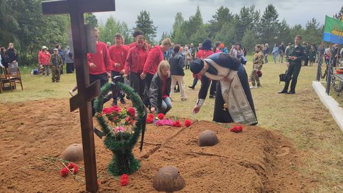 В братскую могилу у деревни Козлово перезахоронили останки ещё десяти советских солдат.