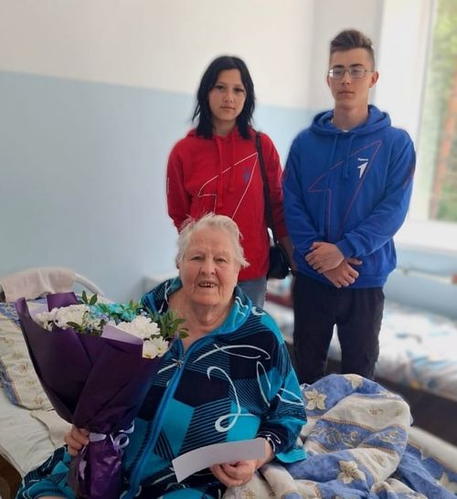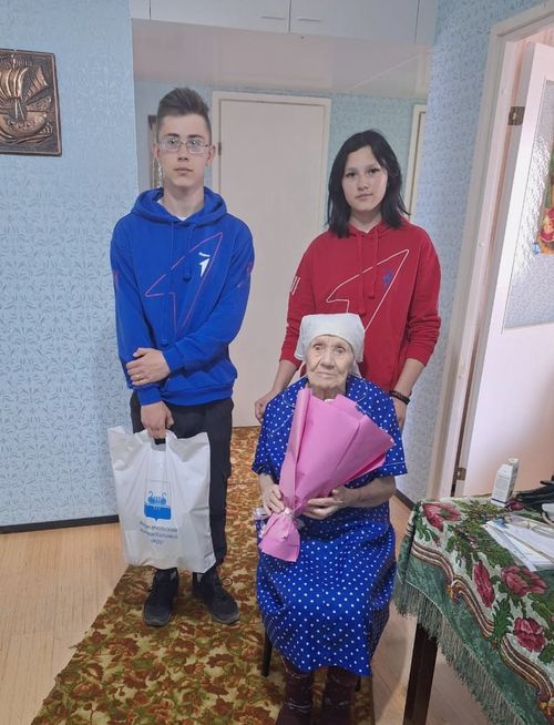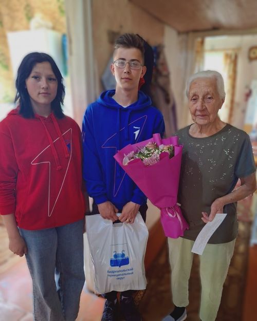 Студенты филиала колледжа в г.Андреаполь передали поздравительные послания, вручили подарки Анне Ивановне Кирилловой, Тамаре Антоновне Абрамовой, Бэлле Сергеевне Жималиной - дома у ветеранов и в больнице.