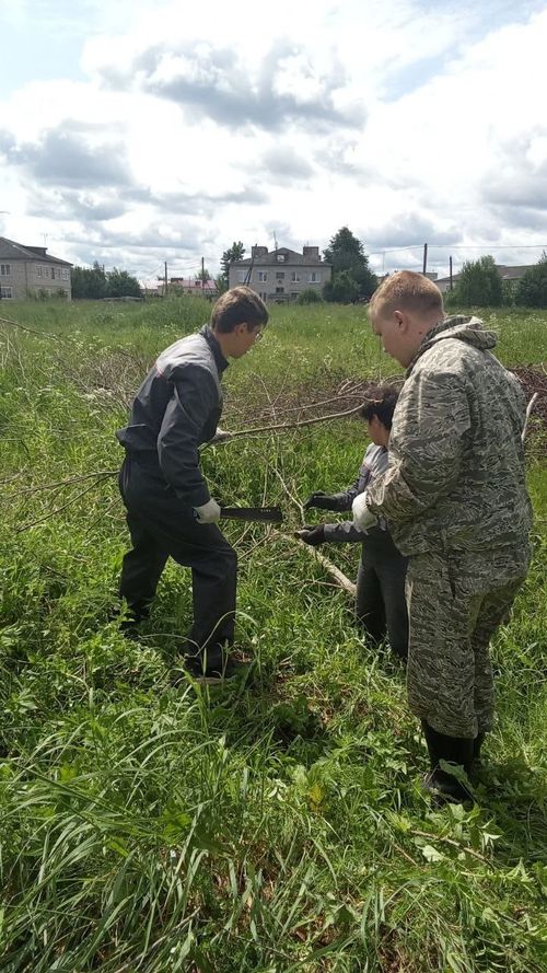 Студенты филиала колледжа, уже не в первый раз стараются помочь в уборке территории рядом с краеведческим музеем от спиленных деревьев и веток.