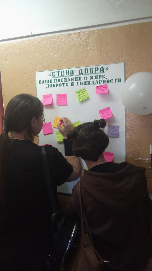 3 сентября студенты, активисты Движения Первых под руководством педагога доп. образования Антонины Александровны Малининой и зав. библиотекой Галины Николаевны Ершовой провели акцию "Стена добра".
