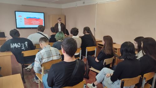 Куратор, преподаватель Елена Витальевна Громова, вместе со студентами обсудили влияние современных гаджетов и виртуального пространства на нашу речь, развитие русского языка и необходимость бережного отношения к нему в условиях стремительного технического прогресса.