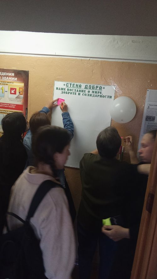 3 сентября студенты, активисты Движения Первых под руководством педагога доп. образования Антонины Александровны Малининой и зав. библиотекой Галины Николаевны Ершовой провели акцию "Стена добра".